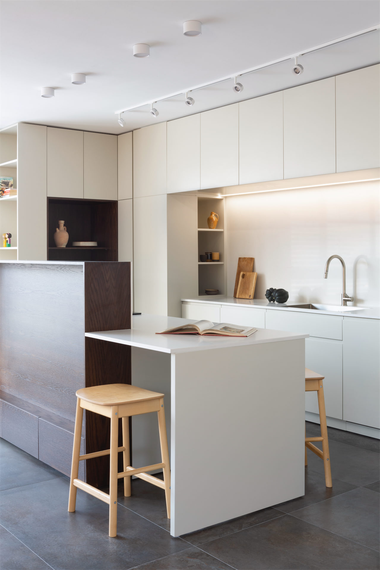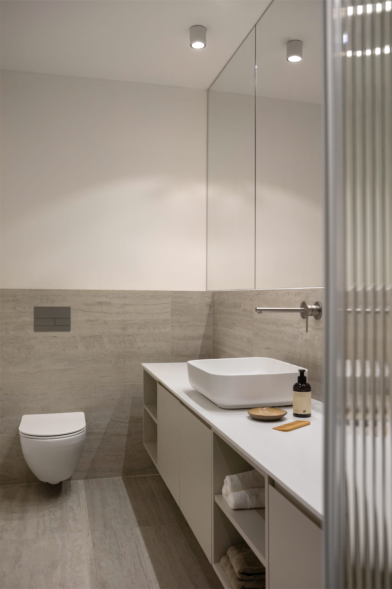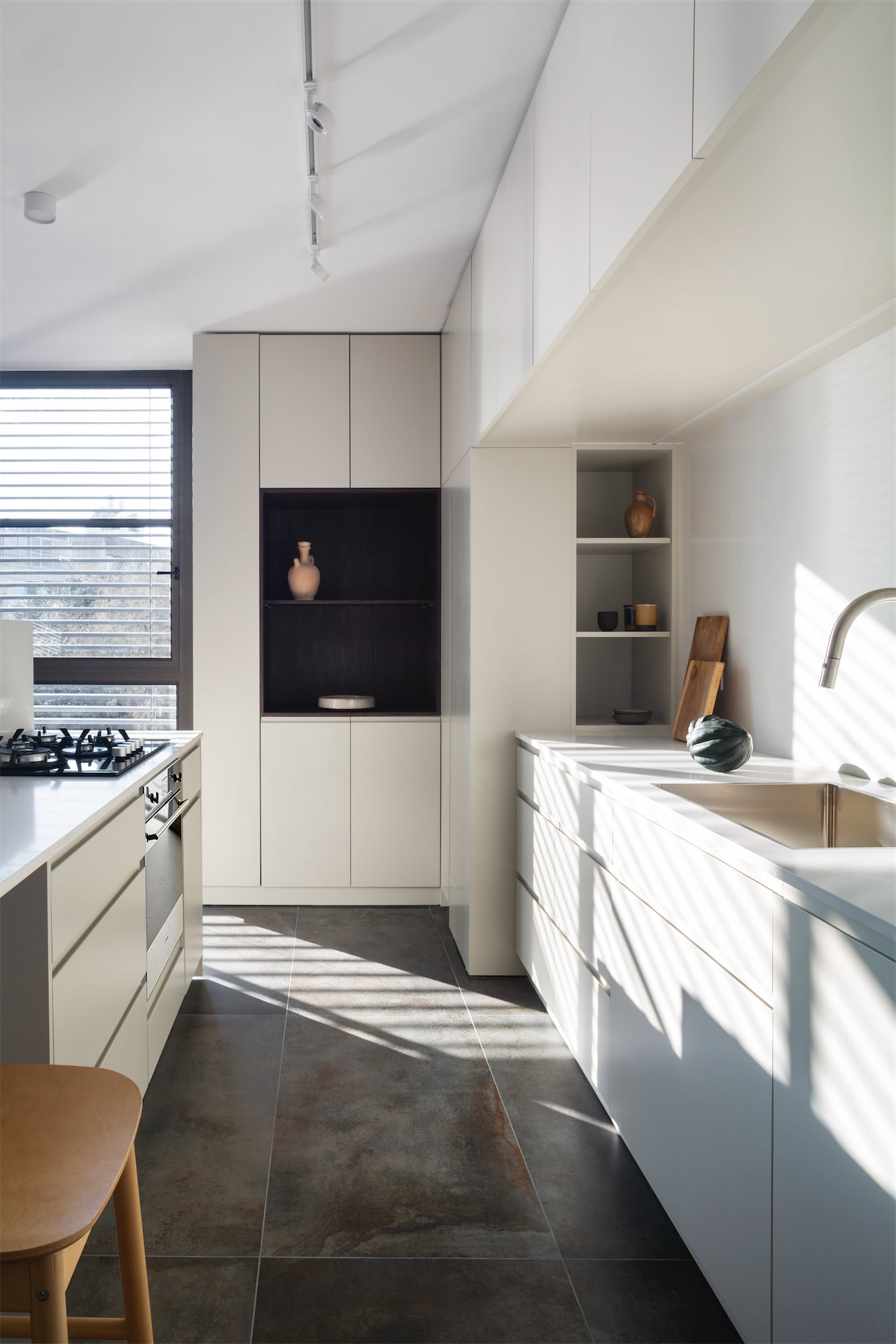 נבחרה שפה חומרית נקייה ומאופקת, אך כזו שאינה קרה או מנוכרת. התוצאה משדרת חום וביתיות, ניקיון עיצובי ועל-זמניות.