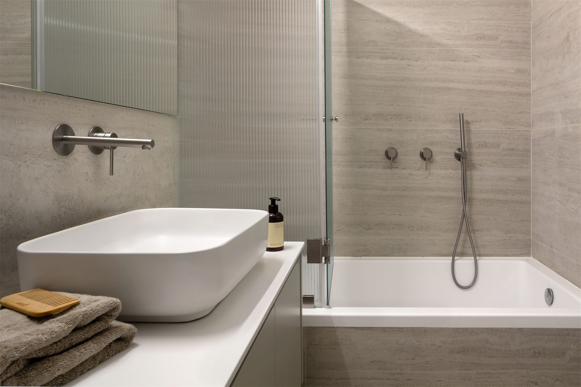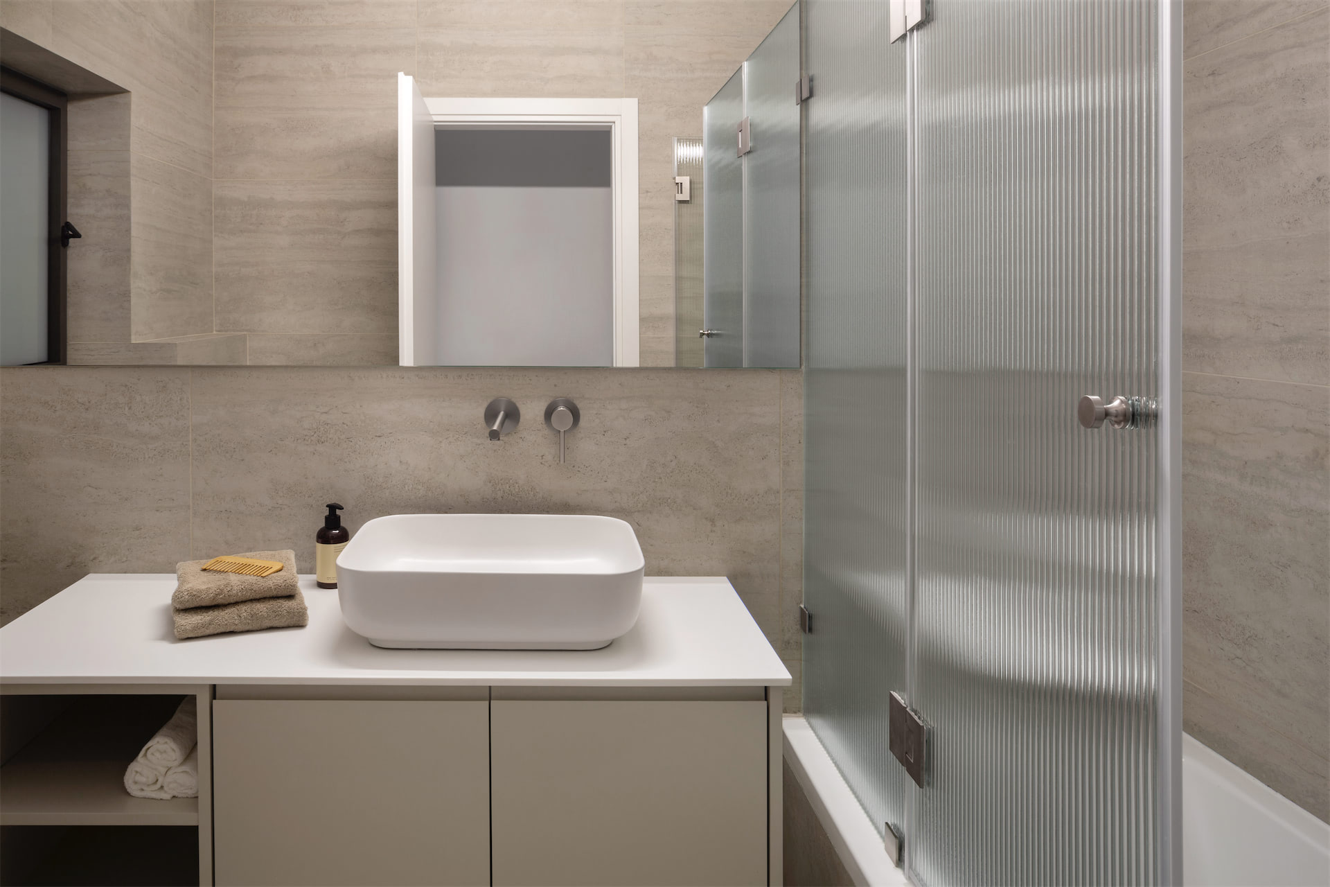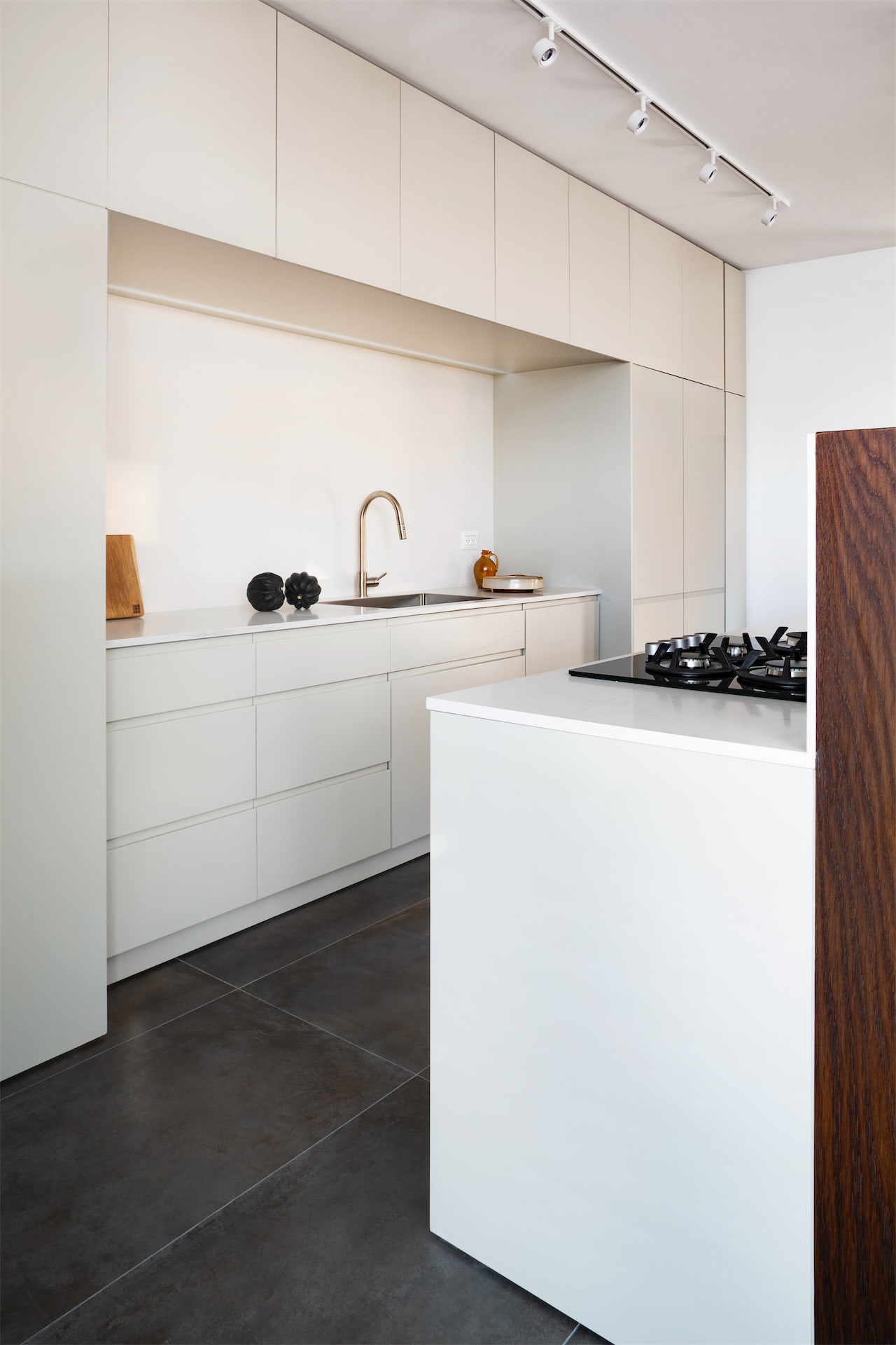 נבחרה שפה חומרית נקייה ומאופקת, אך כזו שאינה קרה או מנוכרת. התוצאה משדרת חום וביתיות, ניקיון עיצובי ועל-זמניות.